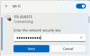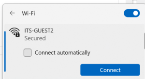 2. Cari nama Wi-Fi ITS-Guest1/ITS-Guest2/ITS-Guest3, klik Connect. Dan ketik kata sandi: itssurabaya