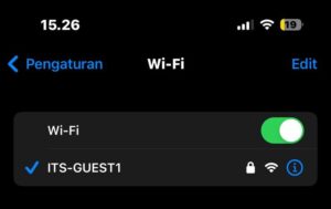 Bagi para tamu yang berada di sekitar area kampus ITS, kini dapat menggunakan Wi-Fi ITS melalui jaringan myITS-WiFi-Guest. Dengan koneksi ini, tamu dapat tetap terhubung dengan mudah selama berada di lingkungan kampus. Berikut langkah-langkahnya: