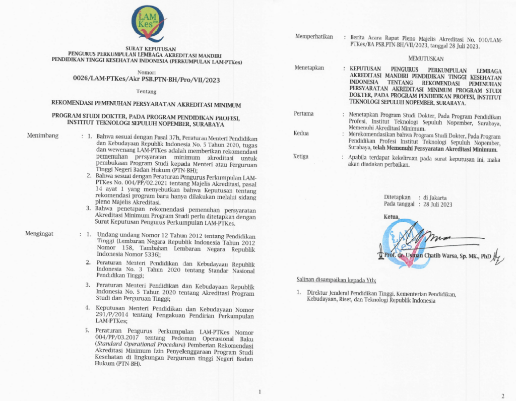 Fakultas Kedokteran dan Kesehatan (FKK) Institut Teknologi Sepuluh Nopember (ITS) kembali memperluas jangkauan kerja sama internasional melalui kegiatan Exchange