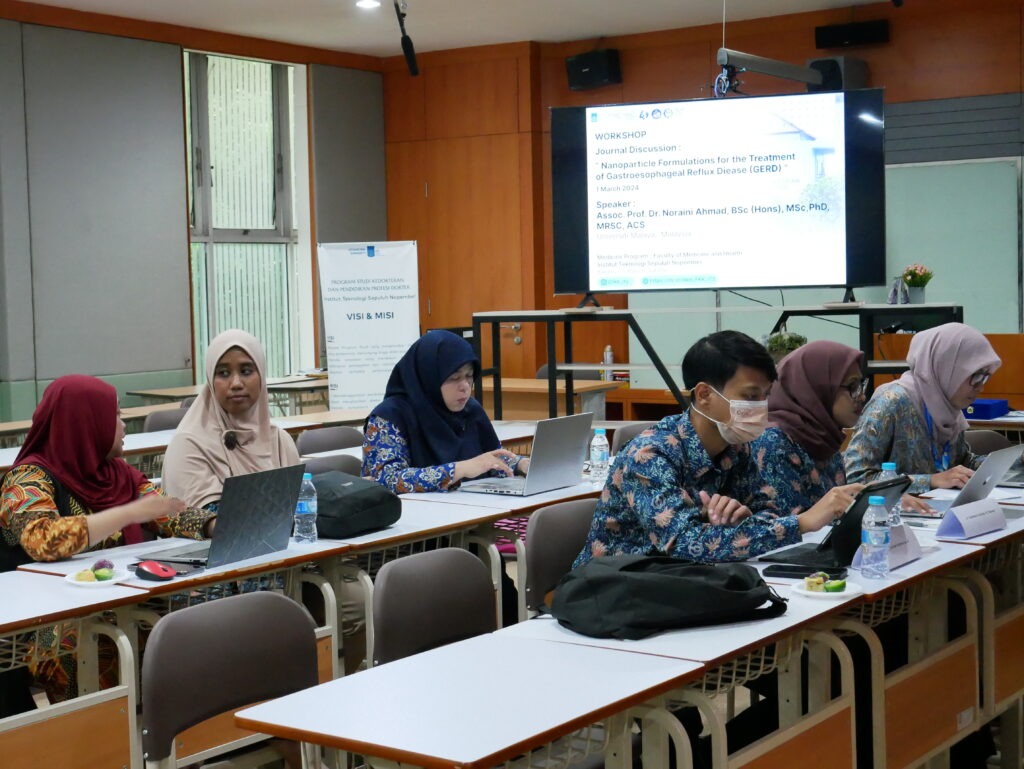 Rangkaian acara yang dilakukan 26 Februari – 1 Maret 2024 ini dilakukan dengan mengundang Assoc. Prof. Dr. Noraini Binti Ahmad yang merupakan associate professor dari Departemen Kimia Fakultas Sains Universitas Malaya. Bidang kompetensi beliau adalah nanocarrier dan nanoparticle yang dibuktikan dengan banyaknya kegiatan penelitian dan review jurnal terkait topik tersebut. Dengan adanya acara ini, akan meningkatkan pengetahuan terhadap kemajuan teknologi dalam bidang farmakologi, biokimia, dan ilmu penyakit dalam, khususnya pada topik nanocarrier dan nanoparticle yang merupakan topik yang banyak diperbincangkan akhir-akhir ini. Hal ini dapat kita peroleh dari paparan materi mengenai sistem nanocarrier yang akan diberikan melalui kuliah tamu dan diskusi penelitian mengenai sistem nanocarrier untuk meningkatkan sistem penghantaran obat dan nanoparticle yang paling efektif dalam tatalaksana GERD.