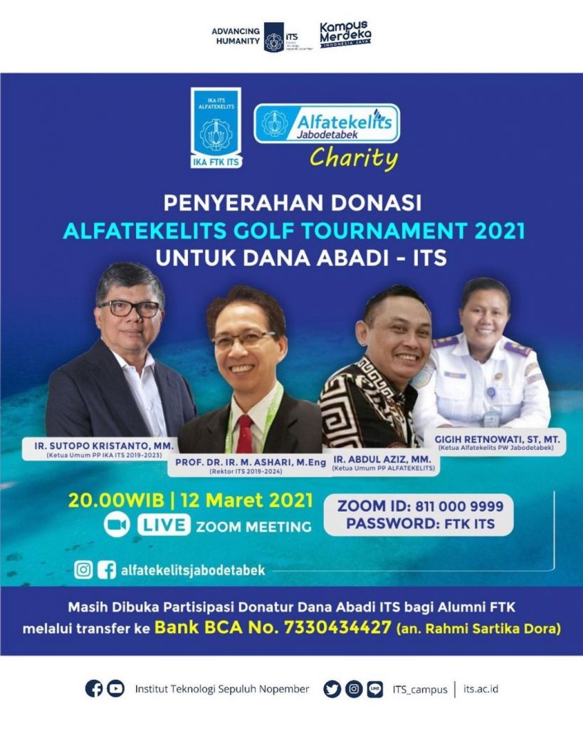 Theme Penyerahan Donasi ALFATEKELITS GOLF TOURNAMENT 2021 untuk Dana Abadi – ITS