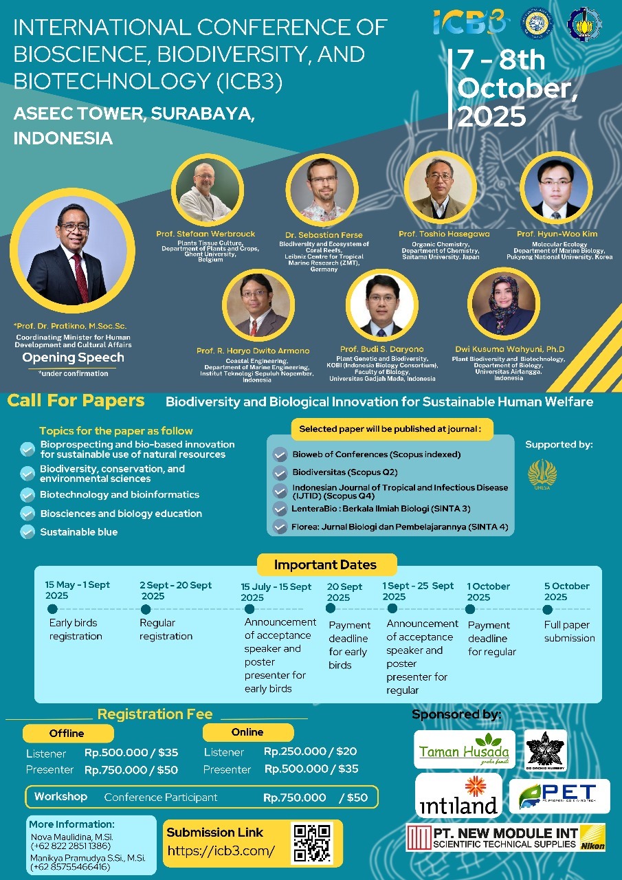 International Conference of Bioscience, Biodiversity, and Biotechnology (ICB3)