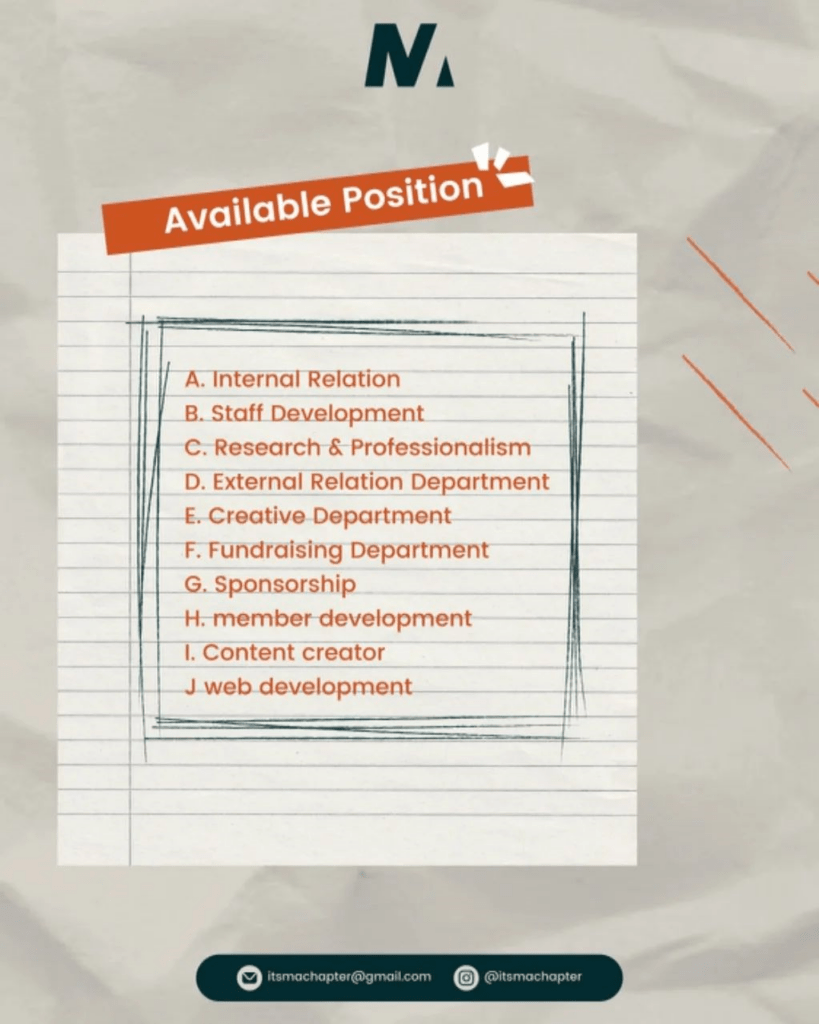 If you have any question regarding the recruitment process, do not hesitate to contact us at: Galang (glgchyno/081216766206) Rafi (rafihaikal03/081284199278)