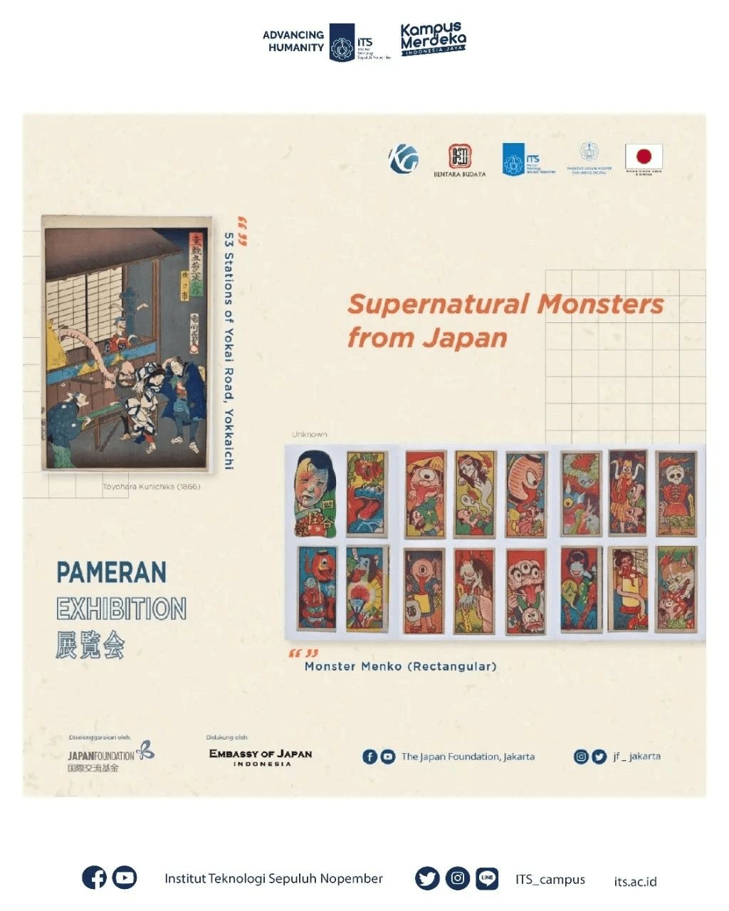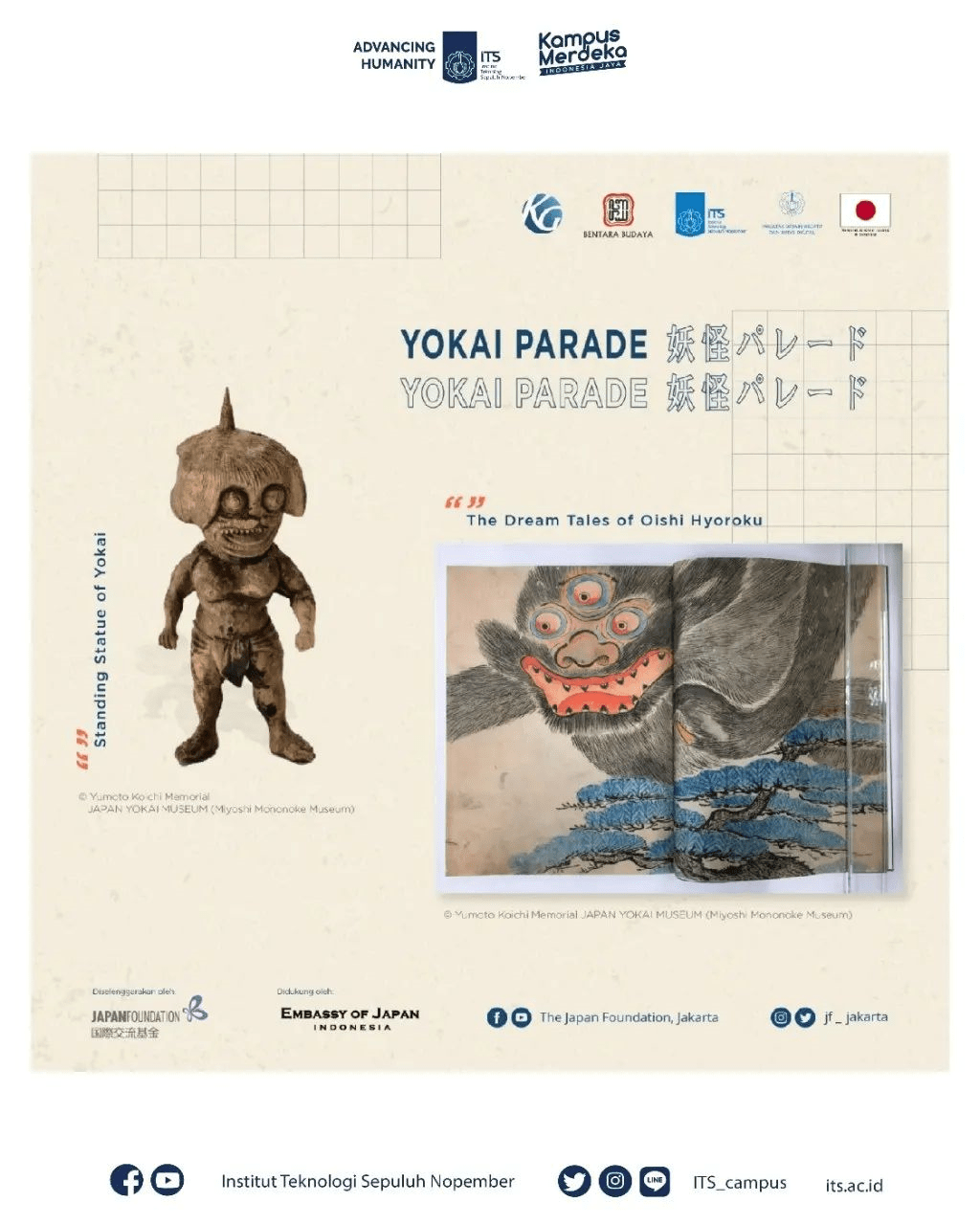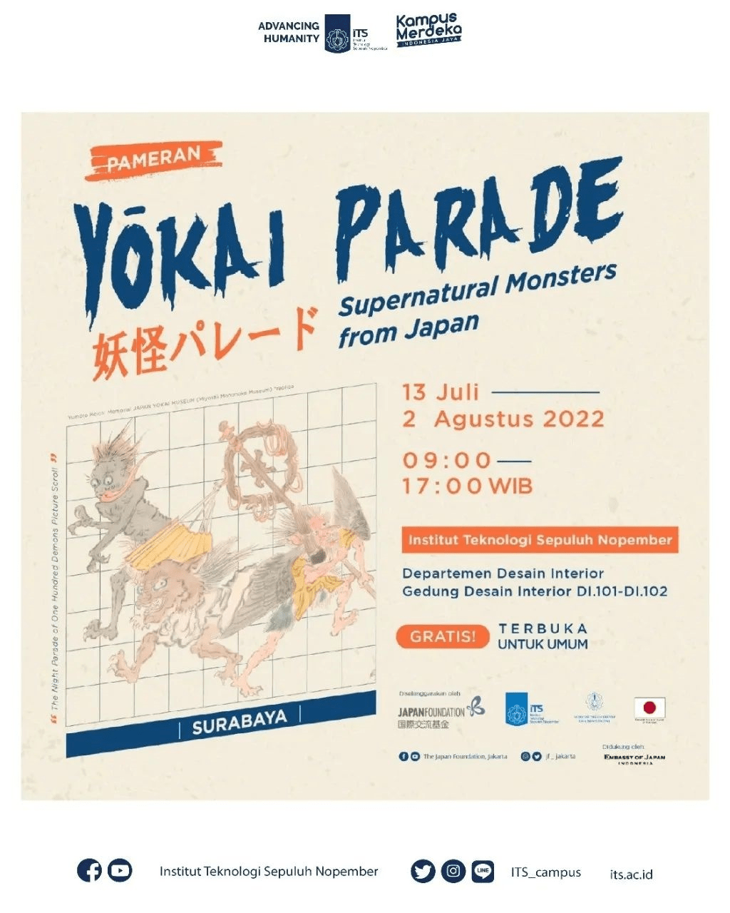 Bersiaplah untuk didatangi para monster dari Jepang, karena pameran “Yokai Parade: Supernatural Monsters from Japan” akan segera hadir di Surabaya! Mari dalami dunia mistis Yokai Jepang yang digambarkan melalui arsip berbentuk Nishiki-e dari zaman Heian (794 – 1185 Masehi) hingga media film dan mainan. Arsip ternama seperti “The Night Parade of One Hundred Demons” juga akan melengkapi eksibisi kali ini!