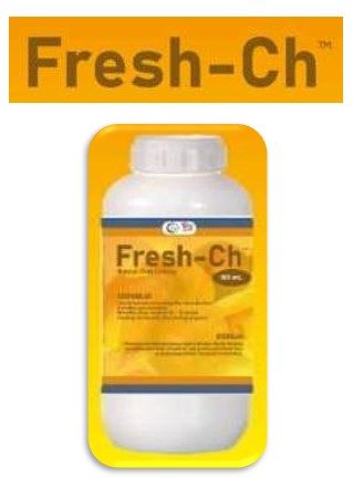 Fresh-Ch merupakan prodduk yang berbentuk cairan bening dan tidak berbau. Bersifat easy handling memiliki daya simpan 10 – 12 bulan dalam botol kedap udara. Efektif dalam coating berbentuk film forming property pada permukaan buah. Keunggulan dari produk Fresh-Ch mampu memperpanjang masa simpan buah karena menghambat laju respirasi yang menyebabkan laju pematangan buah menjadi terhambat.