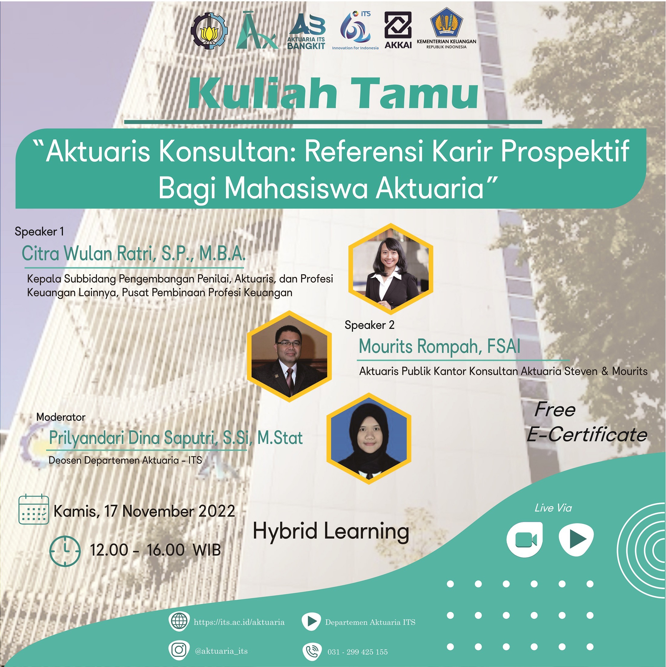 ITS, Aktuaria News – Sebagai wujud nyata implementasi kerja sama strategis, Departemen Aktuaria Institut Teknologi Sepuluh Nopember (ITS) bersama