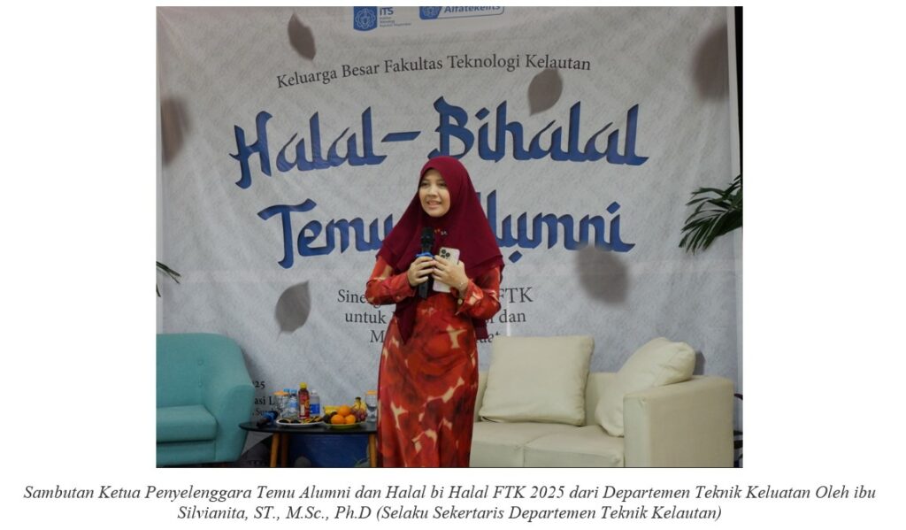 The Faculty of Marine Technology (FTK) held an Alumni Gathering and Halal Bi Halal with the theme: “Synergy in Togetherness of FTK to Inspire and Give Back.” The event featured Ust. Mamafik as the keynote speaker and was attended by the entire FTK community, including retired faculty members, administrative staff, and alumni from various graduating classes.