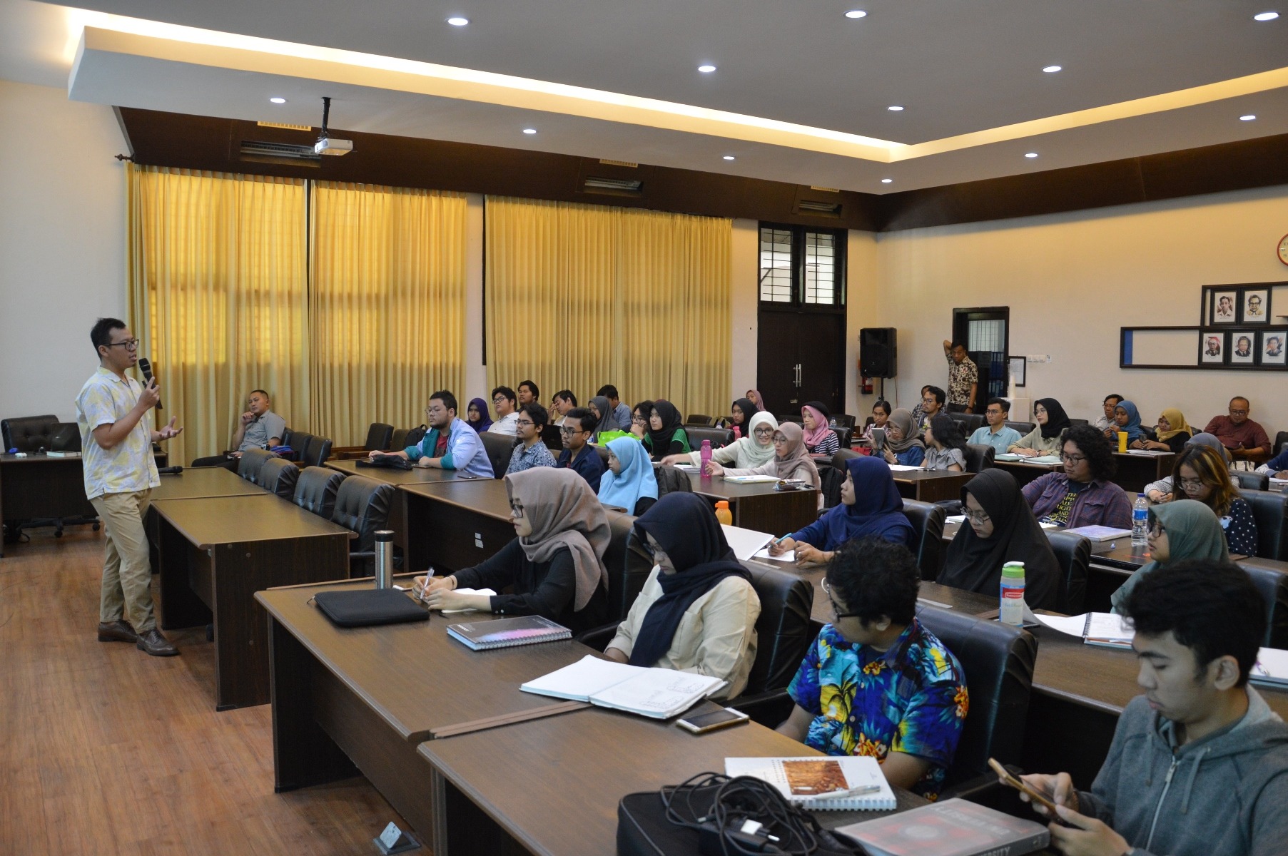 Djelantik meeting room The Djelantik meeting room, which has a capacity of 100 people, is used for conferences, seminars, meetings, public lectures, doctoral program open sessions, and training. This meeting room has an audio system, two (2) LCD screens and projectors, air conditioning, and a speaker podium and pulpit.