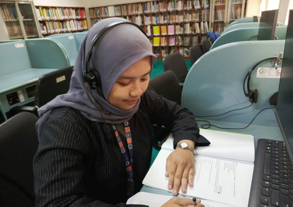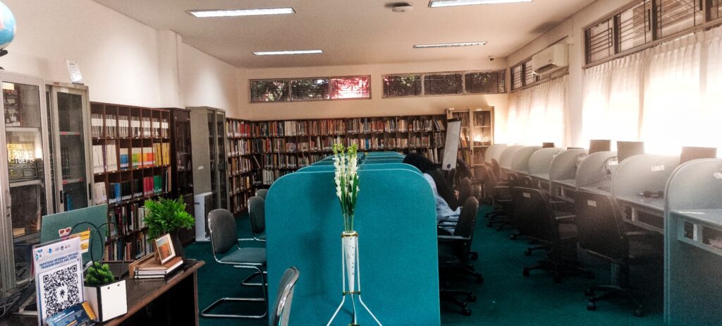 Dilengkapi dengan bilik belajar individu, ruangan ini mendorong belajar secara fokus tanpa gangguan. Rak buku diisi dengan materi persiapan TOEFL, teks akademik, dan bahan bacaan dari berbagai bidang. Dengan cahaya alami yang masuk melalui jendela tinggi dan tata ruang yang tertata rapi, SAR memberikan suasana ideal bagi mahasiswa untuk mengambil kendali atas pembelajarannya dan meningkatkan keterampilan akademik mereka.