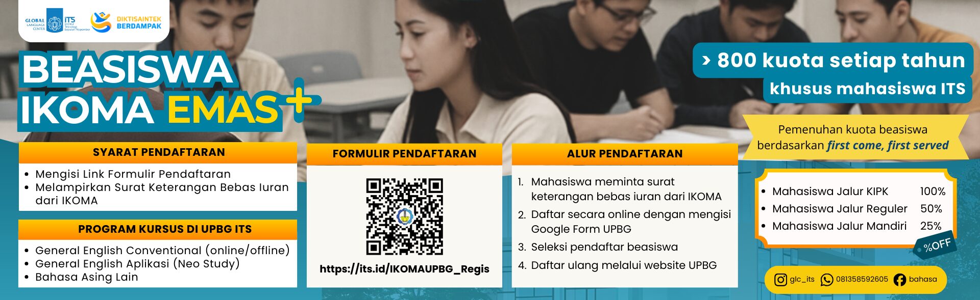 Beasiswa IKOMA EMAS Plus adalah beasiswa yang diberikan oleh IKOMA (Ikatan Orang Tua Mahasiswa) kepada mahasiswa ITS jenjang Pendidikan S1 dan D4.