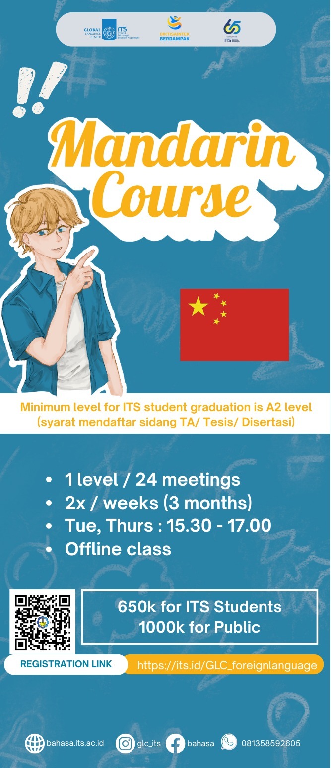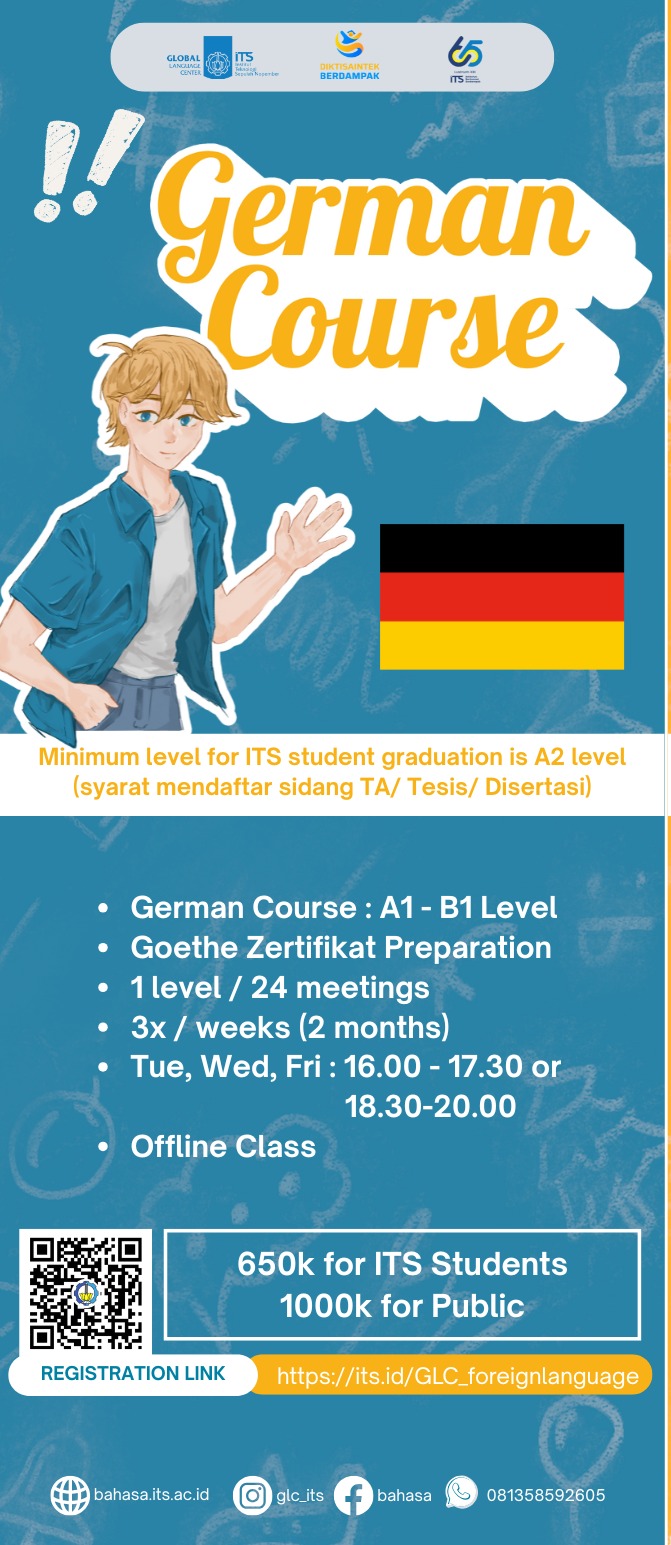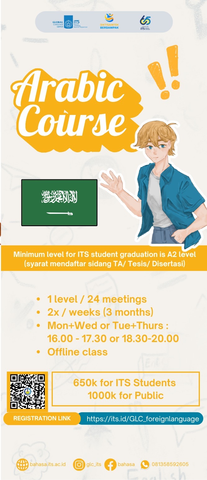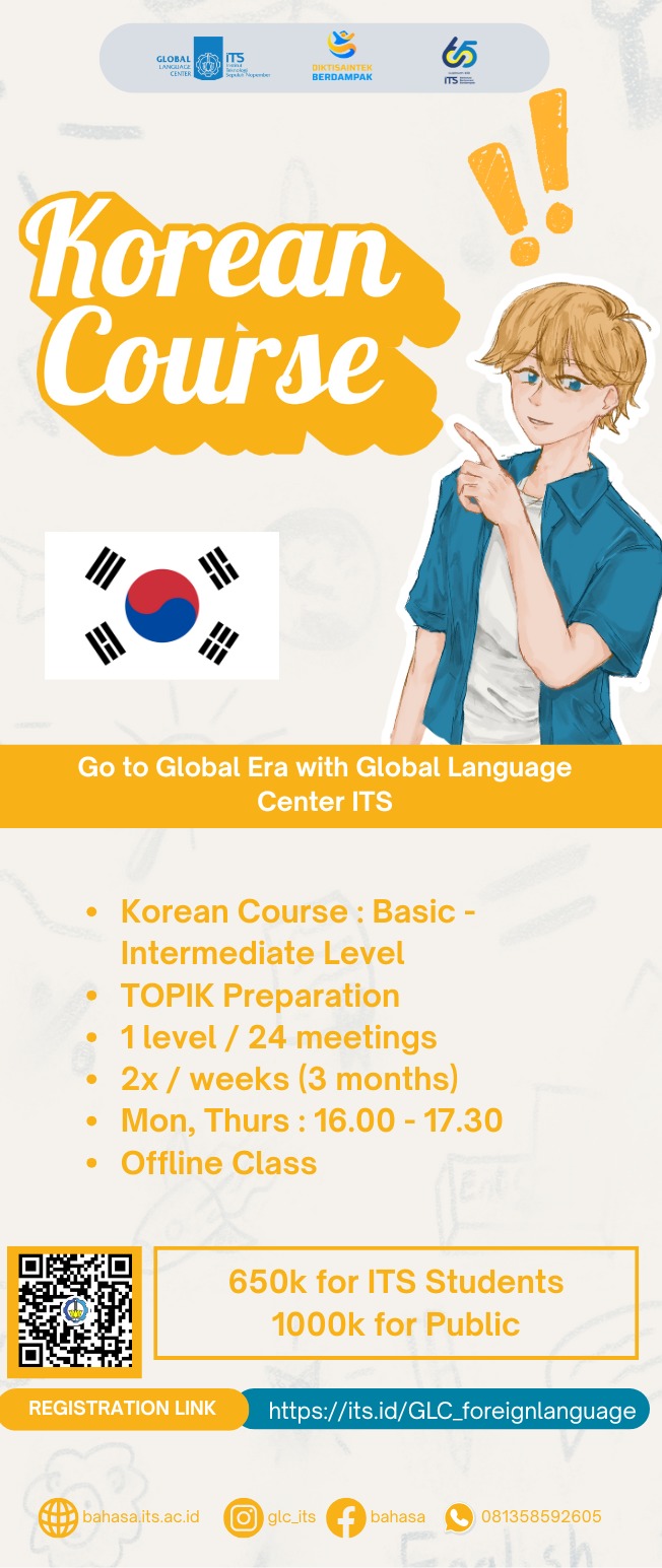 Pendaftaran melalui website: bahasa.its.ac.id dan harus mengisi google form untuk menentukan pilihan hari (jadwal)