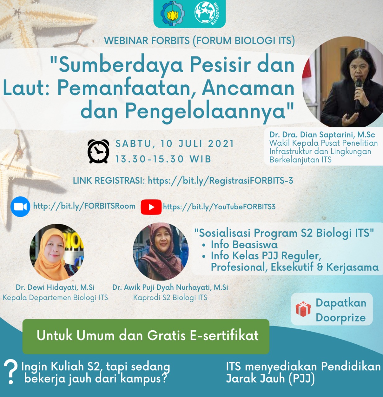 Narasumber: Dr. Dewi Hidayati, M.Si. (Kepala Departemen Biologi) Dr. Awik Puji Dyah Hurhayati, M.Si. (Kaprodi S2) Dr. Dra. Dian Saptarini, M.Sc (Wakil Kepala Pusat Penelitian Infrastruktur dan Lingkungan Berkelanjutan ITS)