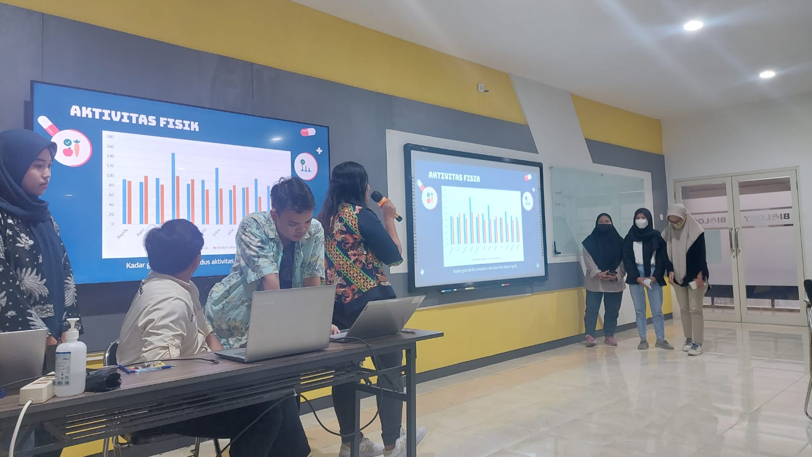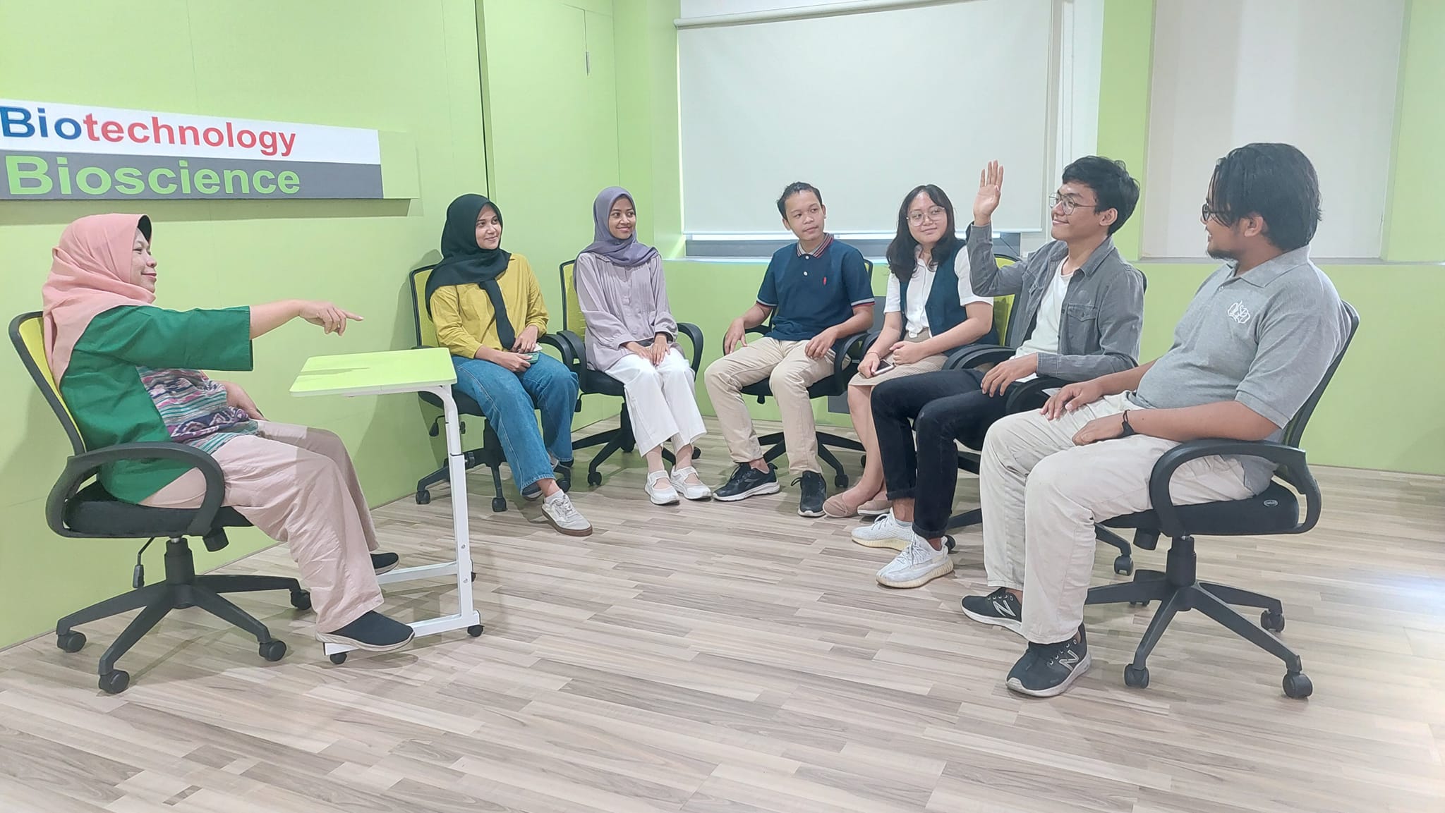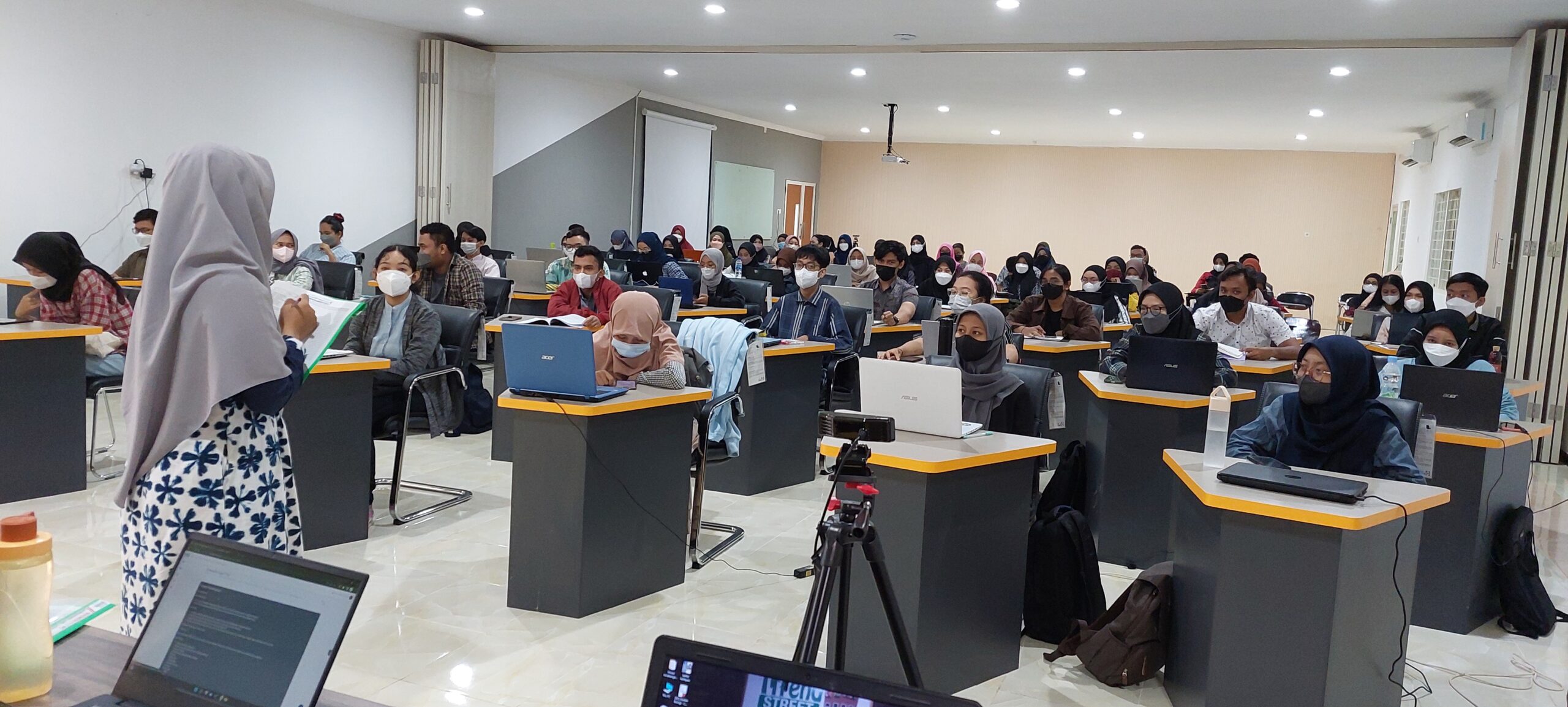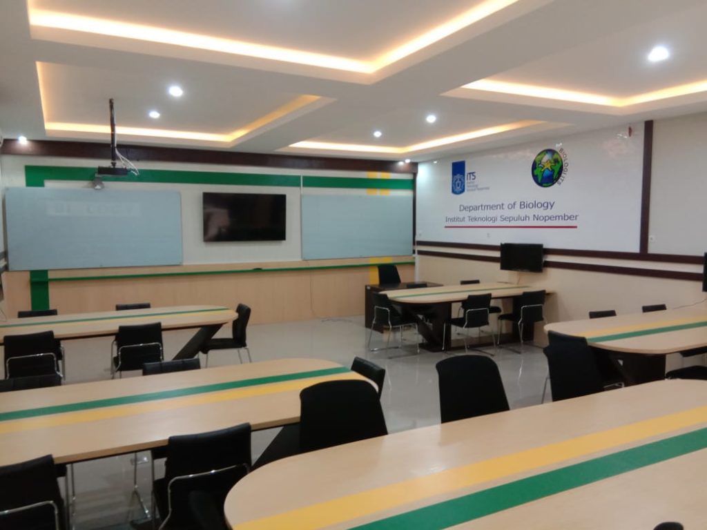There are two types of classrooms available in Biology Department, regular classrooms for lectures and other academic activties and smart classrooms. The smart classrooms have special feature which allow the lecturers to give a lecture in hybrid mode: offline with students in the class and online with students connected through internet. The smart classrooms are equipped with supported devices such as i-Ris camera, high-speed internet connection, speaker and microphone, and digital board. Besides, the smart classrooma are well equipped also with standard instruments, such as air conditioner, LCD and projector to facilitating teaching process. WiFi spot also available in each class that can be accessed freely by all students. Maximum capacity is approx. 40 persons each room.