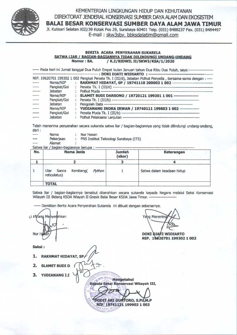 berita acara serah terima ular