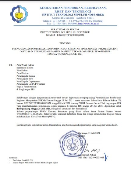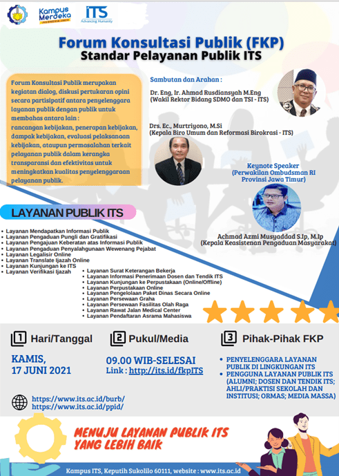 Institut Teknologi Sepuluh Nopember (ITS) kembali berhasil meraih Predikat Informatif kategori Perguruan Tinggi Negeri dalam ajang Anugerah Keterbukaan Informasi Publik 2021 Link Download ITS Pertahankan Predikat Informatif dalam Keterbukaan