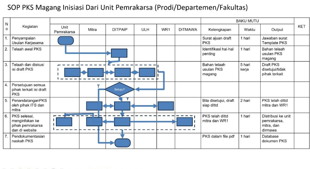 Bagi Departemen/prodi di ITS yang akan melakukan pengajuan Perjanjian Kerja Sama (PKS) Magang dengan Mitra DUDI, silakan dapat mengunduh template berikut Template PKS Magang DUDI.