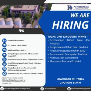 📢 WE’RE HIRING – PPIC PT. Dunia Kimia Jaya membuka lowongan untuk posisi PPIC!
