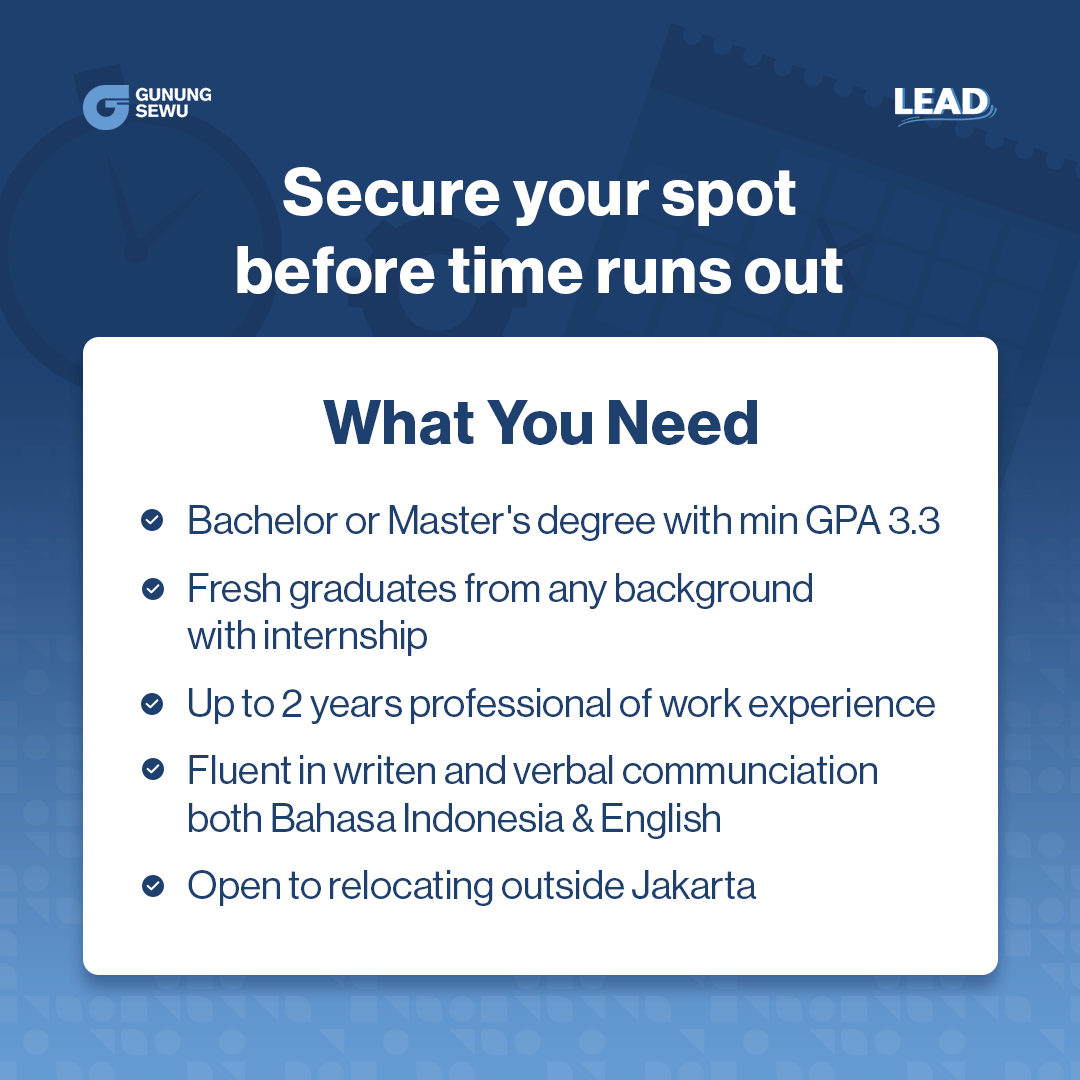🚀 Ready to launch your leadership journey? Gunung Sewu’s LEAD 2026 Management Trainee Program is calling the next generation of bold, future-ready leaders.