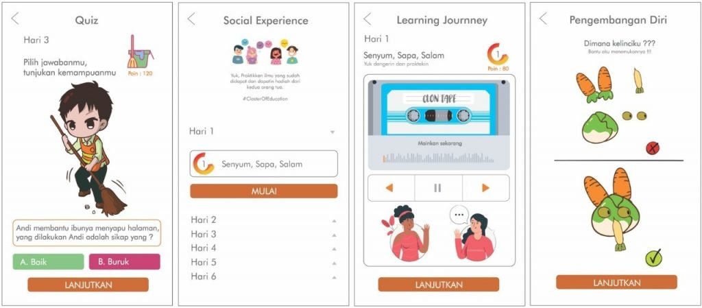 This application also comes with the Self Development feature where student can improve their visual abilities and sensitivity of the left brain by solving puzzling with a unique and interesting form of images. Not only that, in the Social Experience feature students are guided to implement positive attitudes in the surrounding environment so students are expected to be able to maintain their emotional stability in a positive atmosphere by doing the action of basic manners or 5S (smile, greetings, and politeness).
