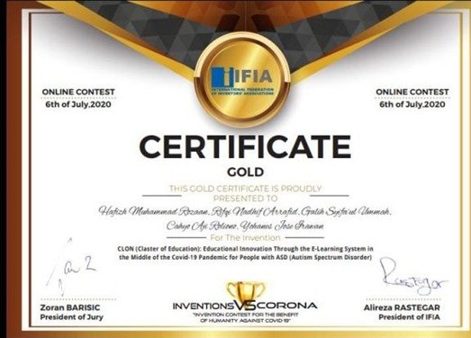 During the pandemic condition, the learning process often carried out through online media. Unfortunately current learning media that available in general are still difficult to access by students with special needs. Departing from this problem, five students of the Institut Teknologi Sepuluh Nopember (ITS) develop an application called Claster Of Education (CLON) to help people with disabilities go through the online learning process.