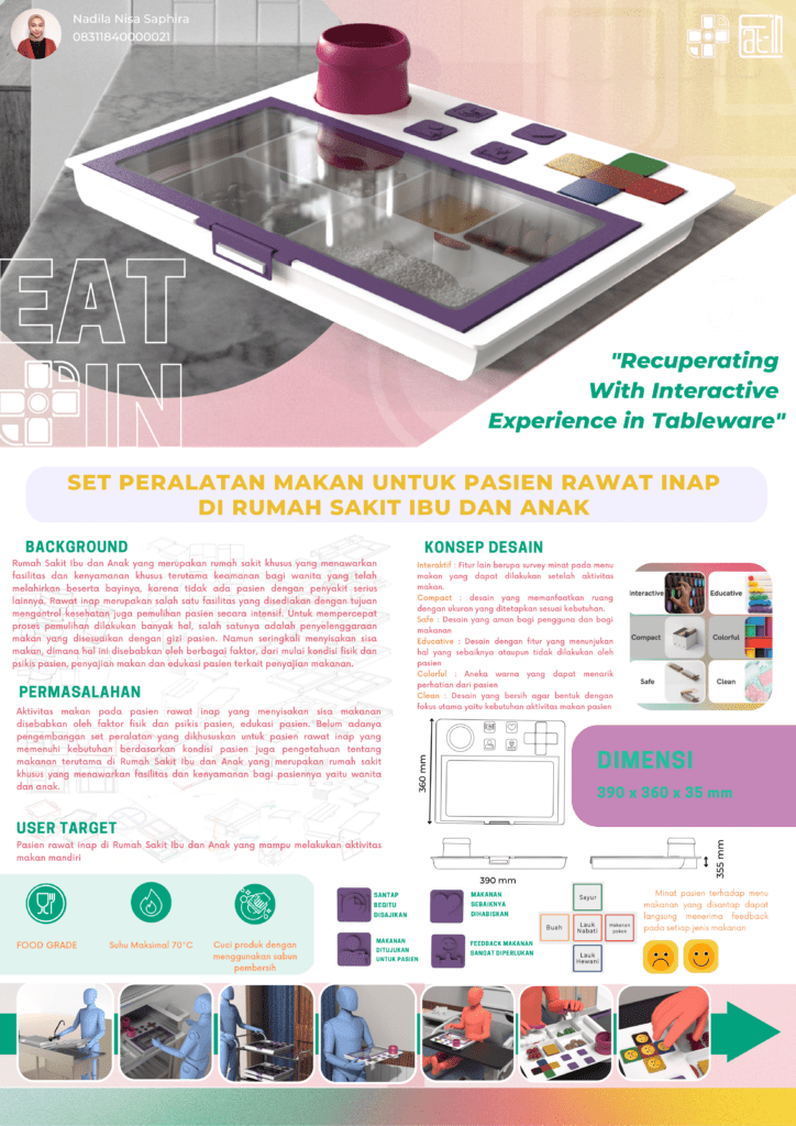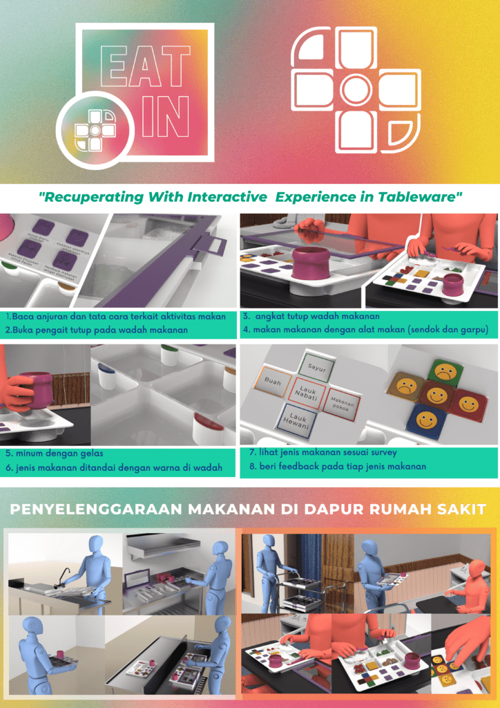 Eating activities are carried out to meet nutritional needs in a healthy condition and especially when in a sick condition, sick conditions cause a weakened physical condition and reduced appetite, thereby reducing interest in eating activities, and the impression on eating activities is unpleasant, while eating activities function to speed up the recovery process. Mother and Child Hospital (RSIA), which is a special hospital with a design and service that has a friendly and warm impression, provides inpatient facilities for its patients. The food organizers at the Mother and Child Hospital control the condition of inpatients and serve food in making menu cycles Food is considered to need to get feedback from patients to be used as an evaluation for making menus in the future. The purpose of this design is to make serving food a way to make patients interested in food, by giving new experiences to eating activities and giving parties RSIA feedback regarding food menu.