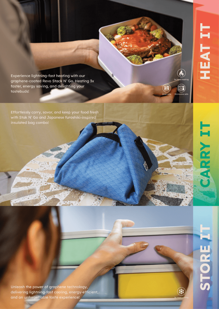 Single-use plastic packaging waste has become a global issue, particularly in the Asia-Pacific region. The “Bring Your Own” (BYO) movement, which emerged from the principle of reuse, one of the 3Rs (reduce, reuse, recycle), has become an effective solution in reducing packaging waste. However, the practice of reuse faces obstacles such as consumer concerns about hygienity, time pressure and other related economic factors. This research collected various data through observation, semi-structured in-depth interview with production partner; Swanz Brand CEO and four food container user that represents the end target user of the product. Various analysis including activity analysis and food-related analysis were conducted to map the main problem & needs. Derived from these needs, it is then concluded that a set of food container with a customizable, efficient, and portable concept is the most suitable concepts. This set consist of a classic food container with removable separator and additional compartment to accomodate various types of dishes.