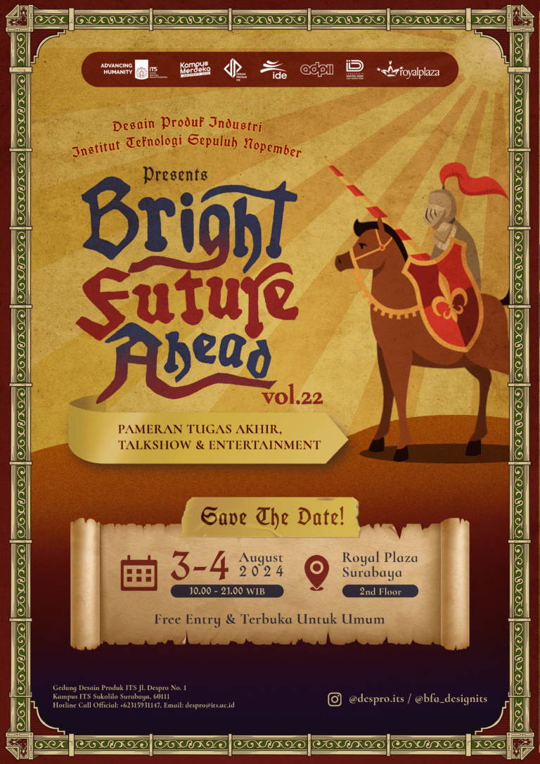 An exhibition and talkshow event for the final project of ITS Industrial Design students in Surabaya which consists of innovative works from the core design in ITS Industrial Design, including in the field of styling (apparel, jewelry, toys, car styling), appliance (medical devices, home & electronic equipment), furniture, transportation. BFA is present regularly every semester not only to display interesting works but also to share creative and inspirational experiences in every design process that can provide a wider wealth of knowledge in the world of Indonesian product design.