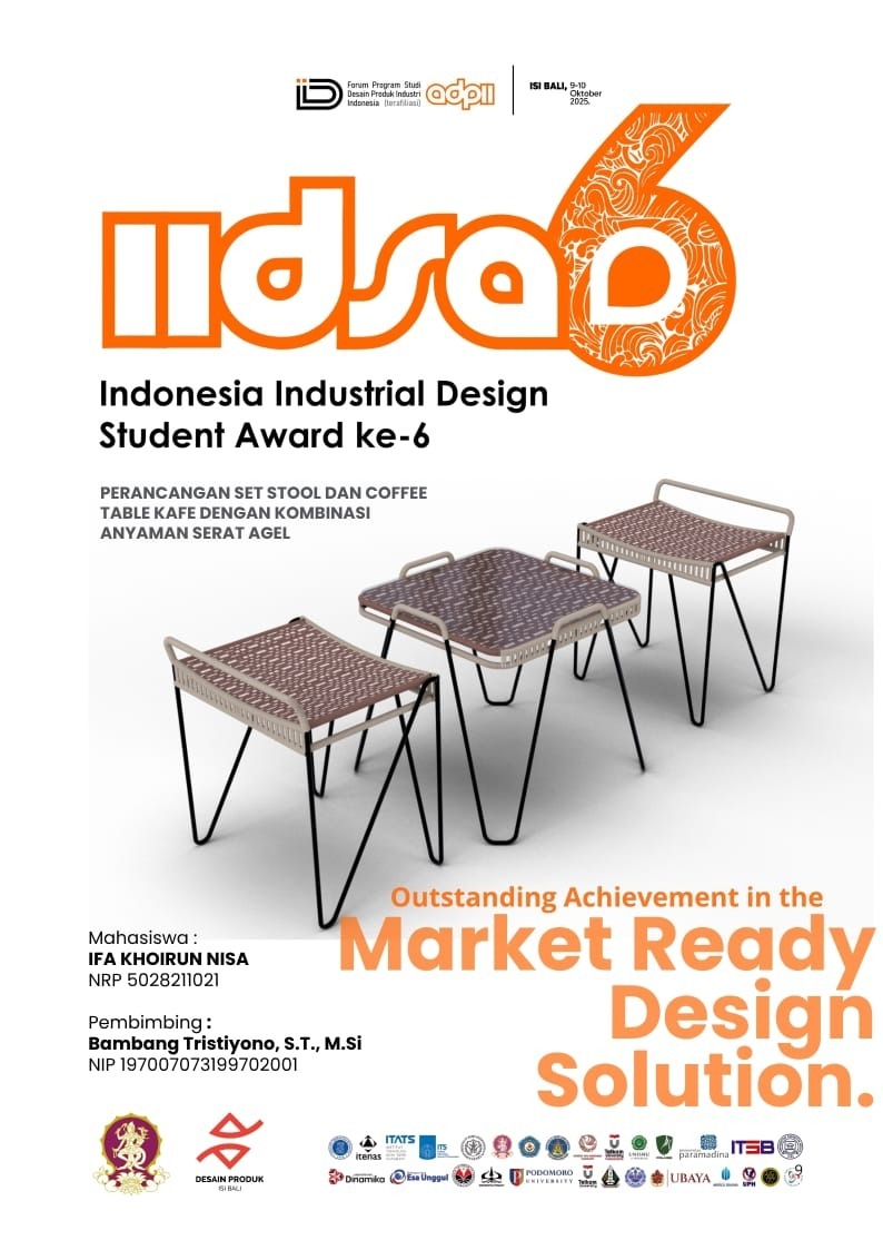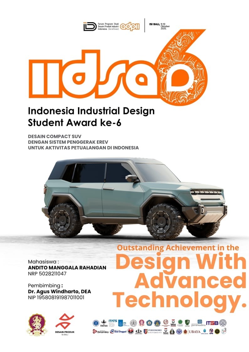 Departemen Desain Produk ITS meraih prestasi di ajang Indonesia Industrial Design Student Award (IIDSA) ke-6, yang diselenggarakan oleh Forum Prodi ADPII [Aliansi Desainer Produk Industri Indonesia] di ISI Denpasar, Bali (9–11 Oktober 2025). Kegiatan ini diikuti oleh 27 perguruan tinggi dari seluruh Indonesia.