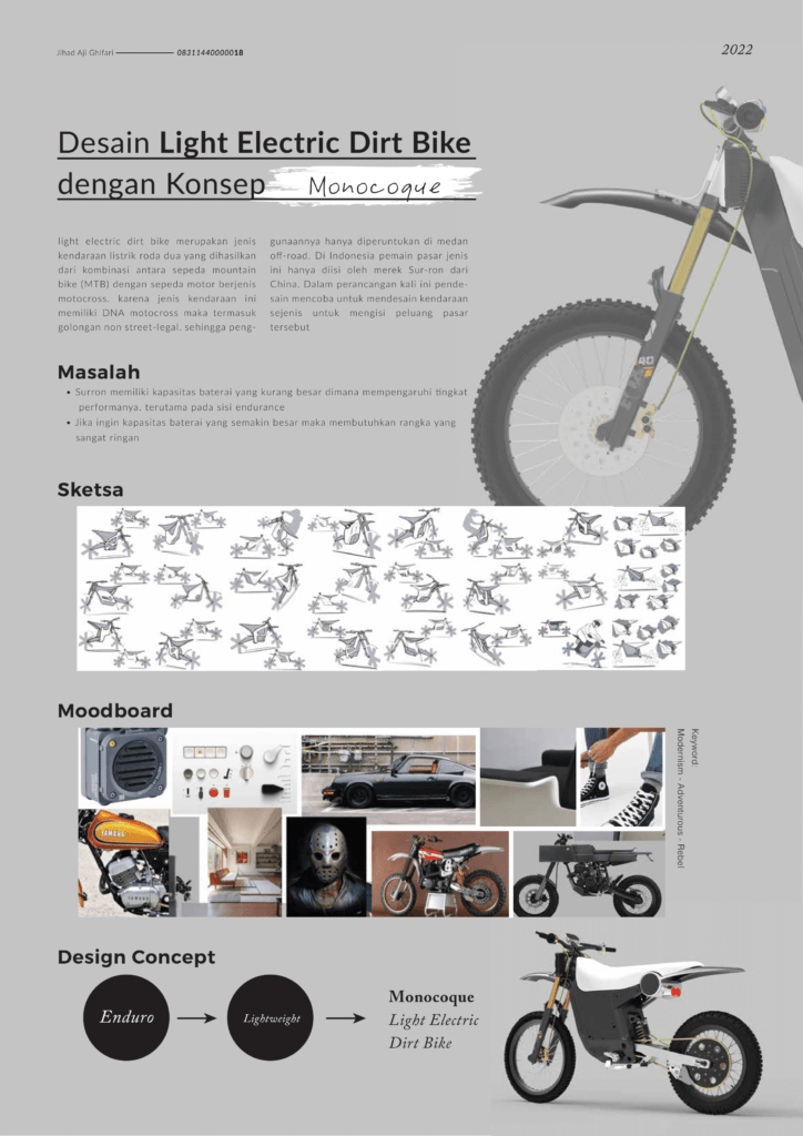 Desain Light Electric Dirt Bike dengan konsep Monocoque