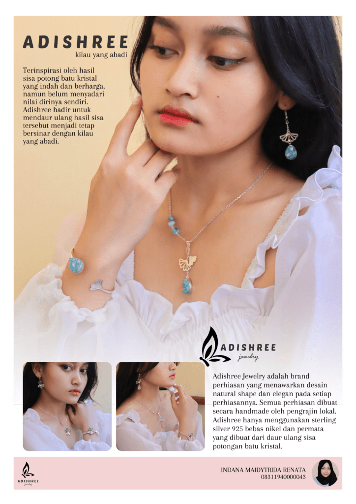Batu permata atau batu mulia merupakan salah satu kekayaan sumber daya alam yang dihasilkan dari banyaknya jumlah gunung aktif di Indonesia. Menurut hasil survei, ditemukan fakta bahwa hampir semua provinsi di Indonesia memiliki potensi batu mulia. Batu permata sendiri memiliki bentuk yang sangat beragam di alam. Untuk memperindah bentuk, menyesuaikan bentuk, dan ukuran, sebagian besar batu permata dibentuk atau di cutting sesuai bentuk dan ukuran yang diinginkan. Bentuk-bentuk tersebut dipotong dari batu mentah yang bentuknya bervariasi sehingga tentu saja akan menghasilkan sisa potongan. Hasil sisa tersebut belum dapat dimanfaatkan dengan baik karena dirasa ukurannya yang kecil dan tak beraturan sehingga akan sulit untuk proses pembentukannya. Tujuan dari penelitian ini adalah untuk memanfaatkan sisa hasil potongan batu kristal dengan cara mendaur ulangnya menjadi produk perhiasan baru yang dapat dipadukan dengan material logam mulia. Produk perhiasan tersebut harus memiliki konsep yang sesuai dengan target pasar yaitu wanita urban.Perancangan ini dilakukan dengan dua metode yaitu kualitatif dan kuantitatif.