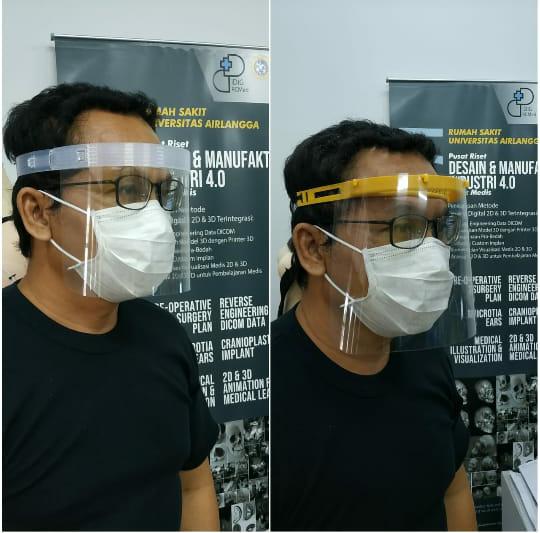 Desain faceshield ini menggunakan dua jenis plastik untuk pembuatannya.