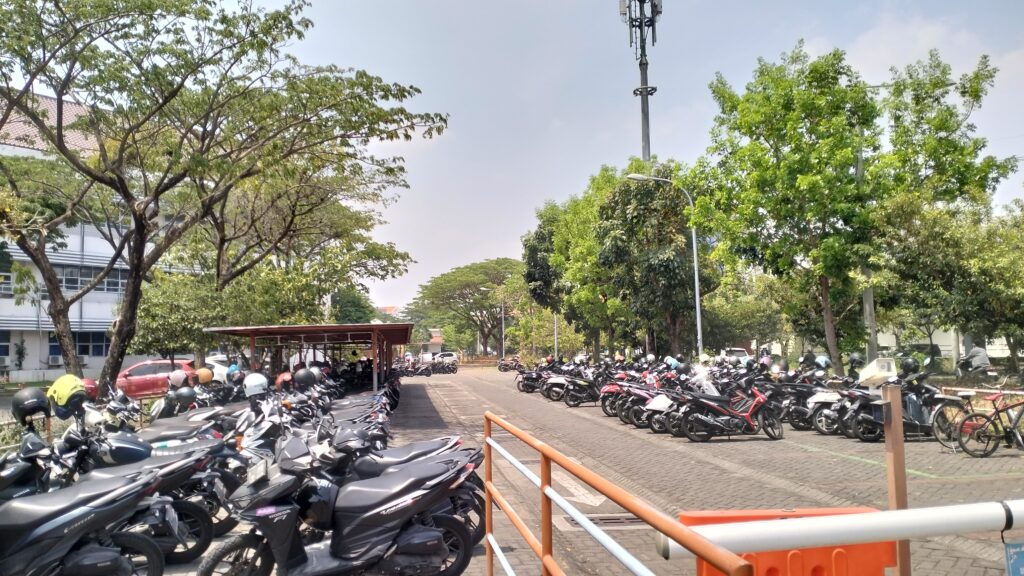 Despro ITS mempunyai lahan parkir yang cukup menampung banyak kendaraan baik itu mobil maupun sepeda motor. tempat parkir yang mamadai dan staff penjaga parkir selalu siap sedia di tempat.
