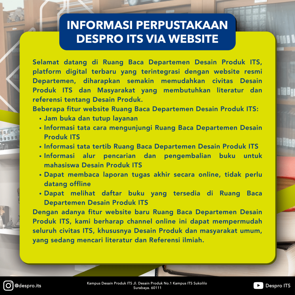 Informasi Perpustakaan Departemen Desain Produk ITS lewat Website