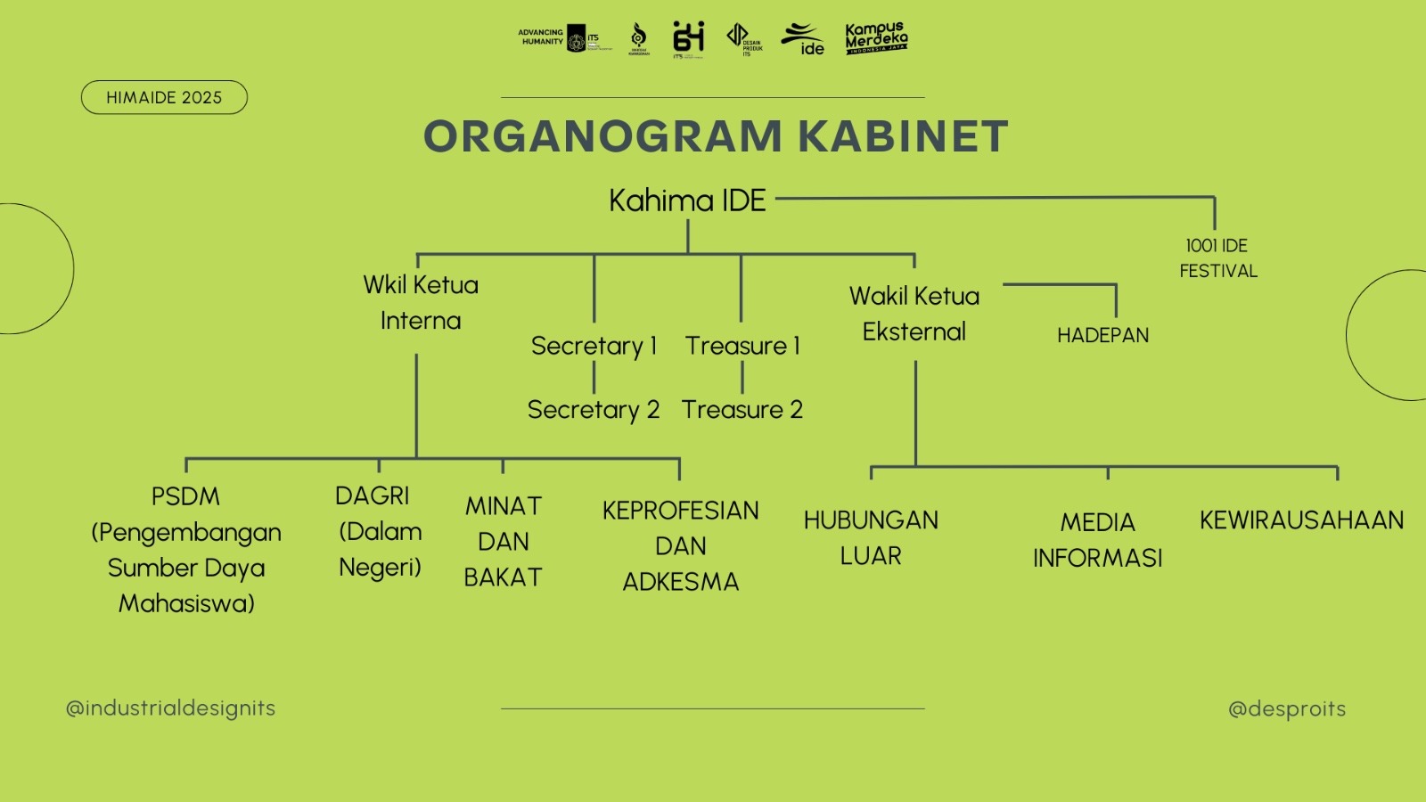 Dan selanjutnya landasan dan peraturan yang menaungi HIMA IDE ini adalah Anggaran Dasar/Anggaran Rumah Tangga Himpunan Mahasiswa IDE Desain Produk ITS atau bisa disebut dengan AD/ART HIMA IDE-ITS.