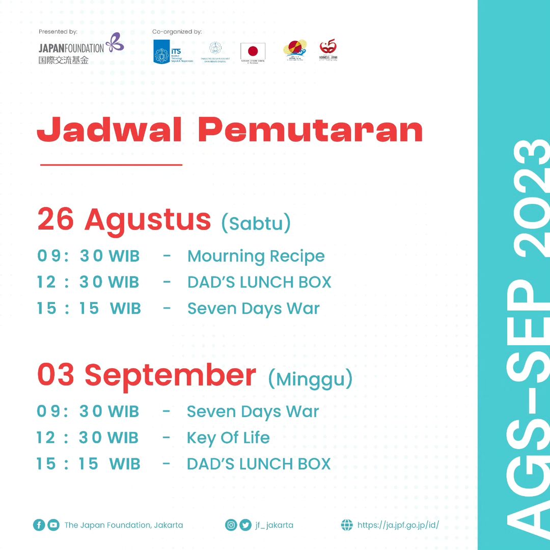 Selain mengunjungi pameran, Sahabat JF juga bisa mengikuti acara seru lainnya yaitu pemutaran film yang akan dilaksanakan pada: