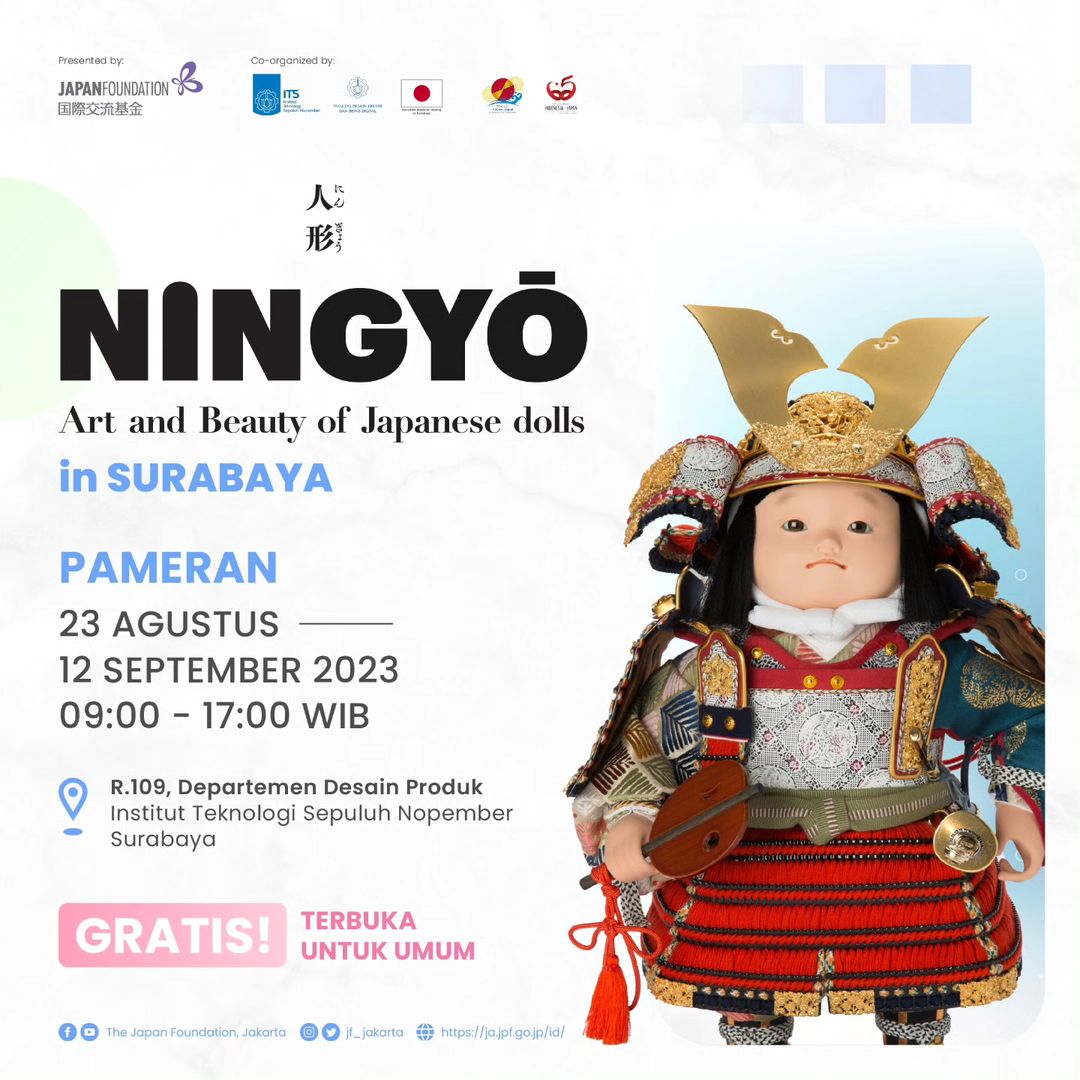 Pameran “NINGYŌ: Art and Beauty of Japanese dolls” telah diselenggarakan The Japan Foundation, Jakarta di Galeri Nasional Indonesia pada bulan Juli kemarin. Kini, boneka-boneka tersebut akan melanjutkan perjalanan mereka untuk meramaikan kota Surabaya!