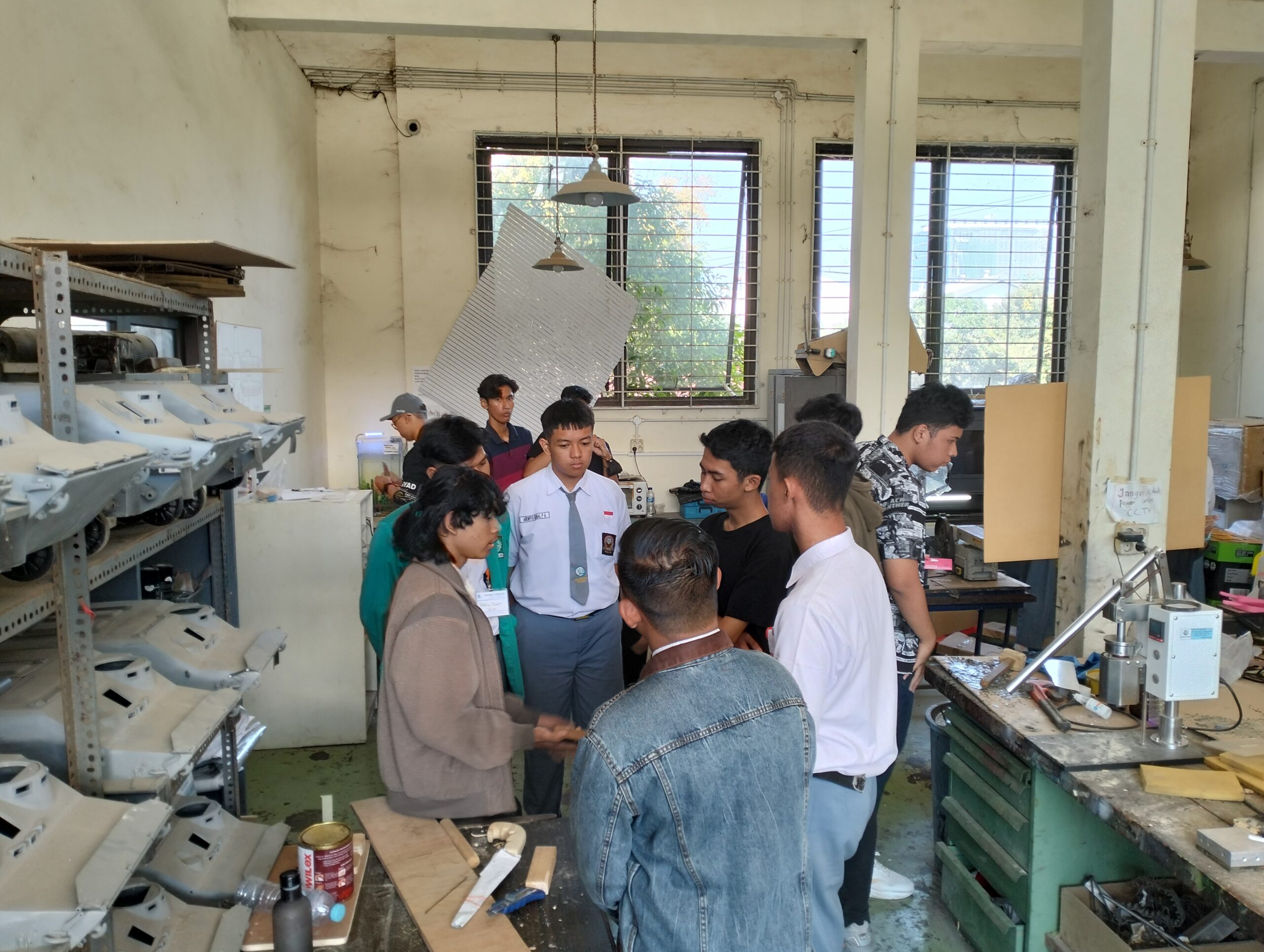foto diatas merupakan foto bersama antara dosen, mahasiswa, serta peserta sit-in desain produk. sebanyak 20 siswa dari beberapa sekolah, nampak antusias mengikuti kelas satu hari atau satu hari menjadi mahasiswa desain produk its. siswa siswa ini mendapatkan pengalaman langsung dari dosen yang ada di desain produk. para siswa siswa ini juga memperkenalkan dirinya dan dari mana asal sekolahnya. pada foto yang lain para siswa siswi ini juga diajak berkunjung ke laboratorium yang ada di desain produk. Dengan adanya creabiz open day ini, diharapkan lebih memperkenalkan desain produk ke siswa siswi, serta khalayak umum. bahwa desain produk bukan hanya sekedar menggambar, namun juga menghasilkan semua karya terbaik dari ide ide tiap individu.