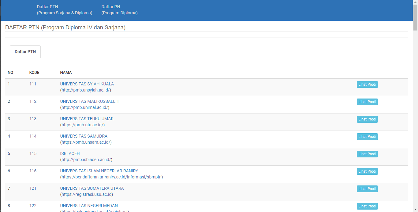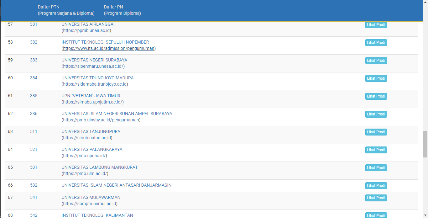 berikut adalah update Daftar PTN (Program Sarjana & Diploma)