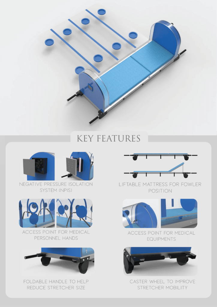Isolation Stretcher for the transfer of Covid-19 patients with a negative pressure isolation system