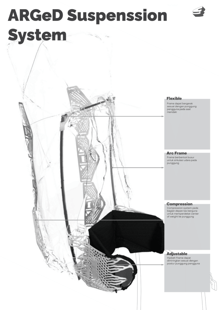 The popularity of recreational activities in the mountains in Indonesia is increasing especially in among young people, they dare to risk their lives to climb the mountain, the burden that is placed on the back when carrying a mountain bag can result in the risk of low back pain (LBP). The aim of this research is to design an ultralight bag with a frame for young people that can add comfort in order to minimize the risk of LBP. The method used in this study uses product comparison studies, interviewing prospective users, persona analysis, mapping user experience, needs analysis, ideas, alternative sketches, to testing design ideas on users. Through the results of the analysis it was found that an alternative design with the concept of a bag with a light frame using the generative design method, practical, comfortable, durable and safe which can reduce