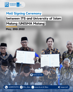 Friday, May 20th 2022 — The signing of a Memorandum of Understanding (MoU) between ITS and the University of Islam Malang (UNISMA Malang) to collaborate. The cooperation plan is as follows: 1. The fields of education and teaching, research, and community service as well as publications and journals; 2. Independent Learning Activities-Independent Campus (MB-KM); 3. Lecturer training and human resource development; 4. Organizing regional, national and international seminars; 5. Other areas agreed by the parties.