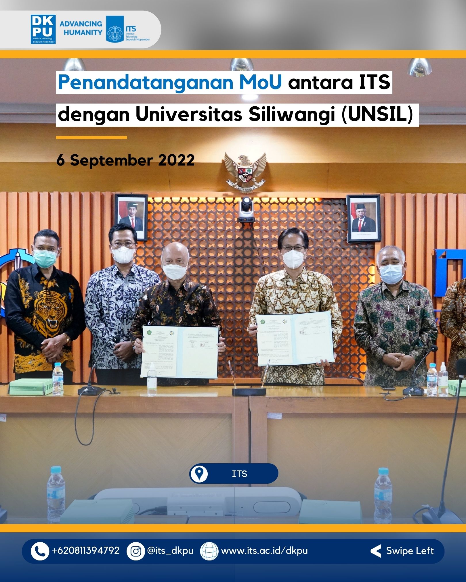 Selasa 6 September 2022 — Telah dilaksanakannya penandatangan Memorandum of Understanding (MoU) antara ITS dengan Universitas Siliwangi (UNSIL). Rencana kerjasama dalam waktu dekat adalah Dosen UNSIL Goes to Doctoral