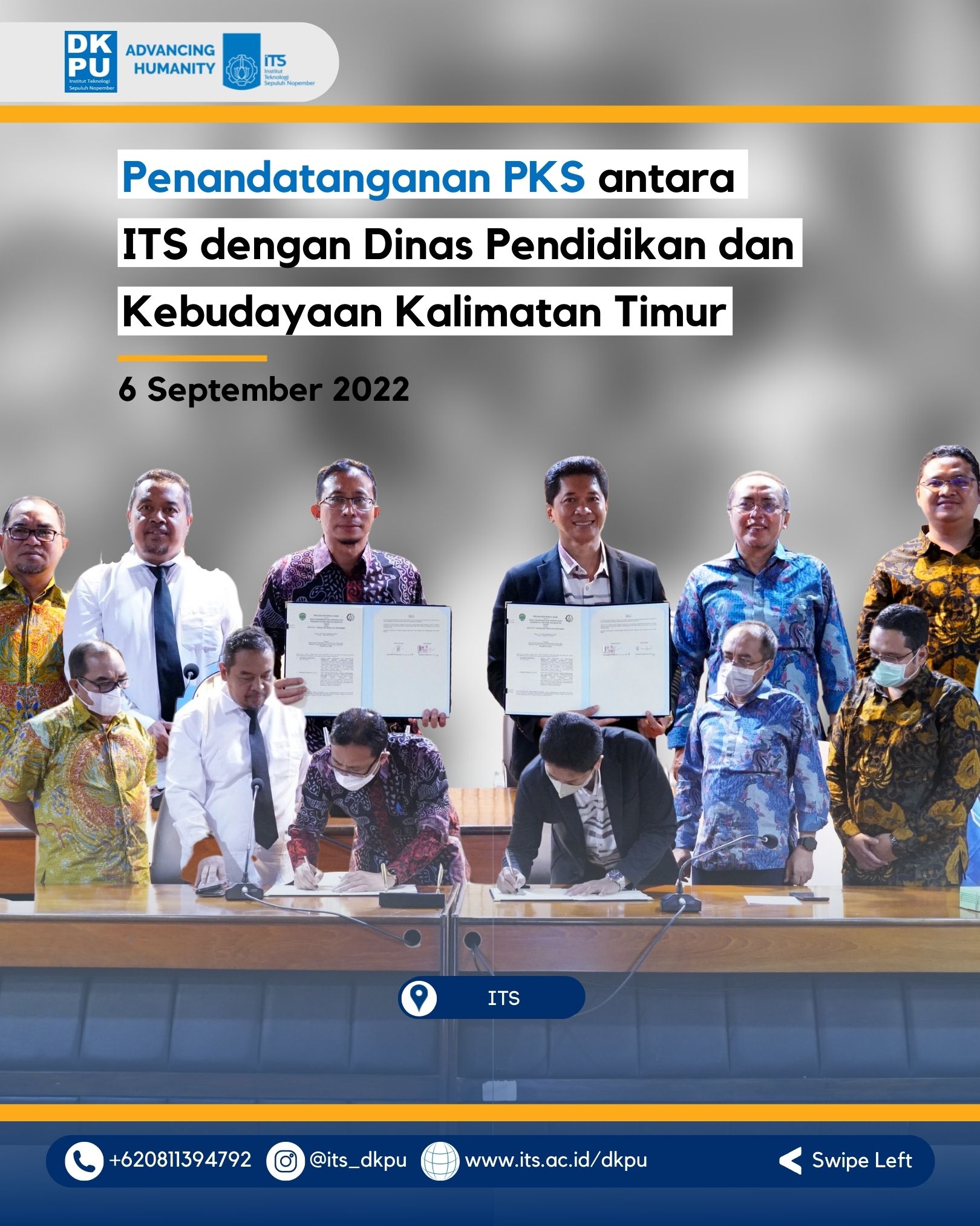 Selasa 6 September 2022 — Telah dilaksanakannya penandatangan Perjanjian Kerja Sama (PKS) antara ITS dengan Dinas Pendidikan dan Kebudayaan Kalimantan Timur. Rencana kerjasama dalam waktu dekat Pelatihan Dual Track,