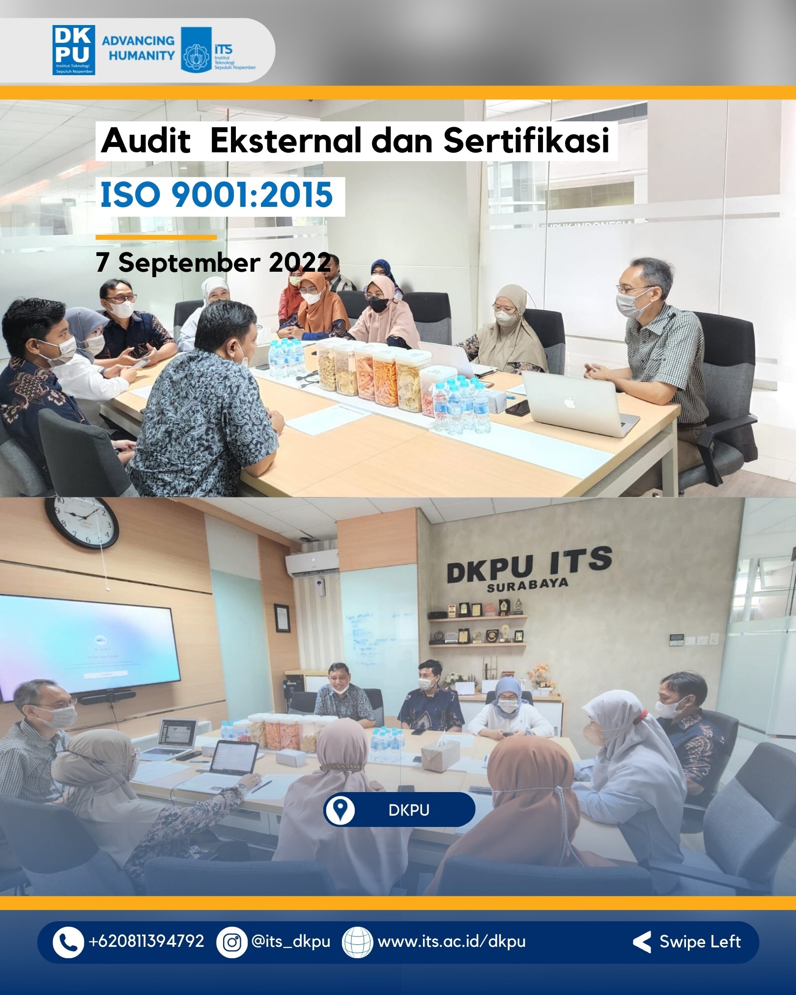 Rabu 7 September 2022 — Telah dilaksanakannya Audit Eksternal dan Sertifikasi Sistem Manajemen Mutu ISO 9001:2015, guna meningkatkan dan mempertahankan mutu pelayanan. #ITSDKPU #ITSCampus #ITSSurabaya