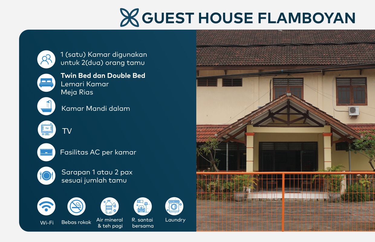 ITS Guesthouse memiliki dua pilihan hunian nyaman untuk tamu kampus, yaitu Flamboyan Guesthouse dan Bougenville Guesthouse. Kedua guesthouse ini terletak di kompleks perumahan dosen ITS Sukolilo dan dikelola langsung oleh DKPU-ITS sebagai layanan hunian jangka pendek dengan fasilitas lengkap.