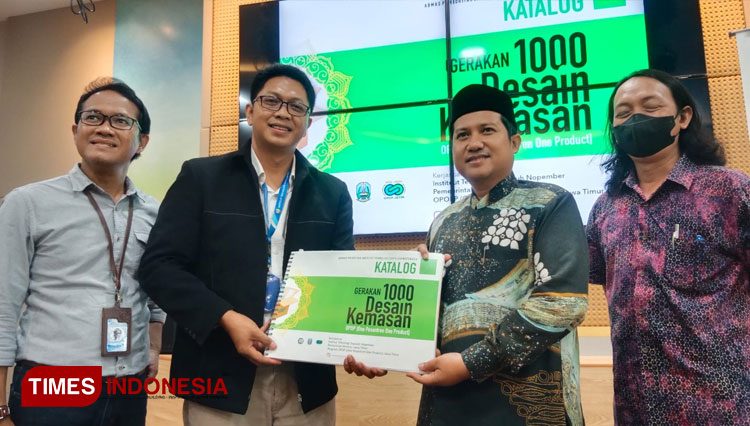 Ketua Abmas ITS Suyatman menyerahkan hasil karya desain kemasan kepada Sekjen OPOP (One Pesantren