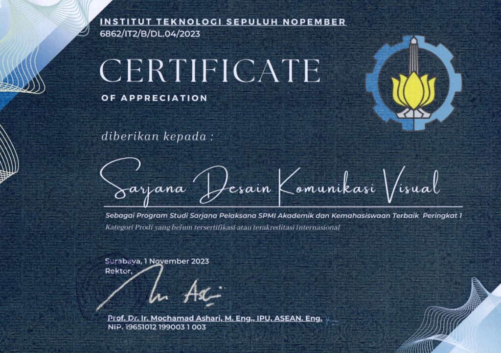 Setiap tahun secara berturut-turut, mahasiswa dan civitas akademik berhasil menorehkan prestasi demi mengharumkan nama departemen, fakultas maupun institut. Berikut daftar penghargaan atau prestasi yang diraih oleh mahasiswa dan civitas akademik Prodi Desain Komunikasi Visual, Institut Teknologi Sepuluh Nopember, baik di tingkat nasional maupun tingkat internasional.