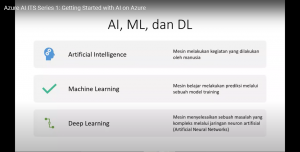 Pada hari pertama training, Teams Coach memberikan materi tentang Getting Started with Artificial Intelligence on Azure.