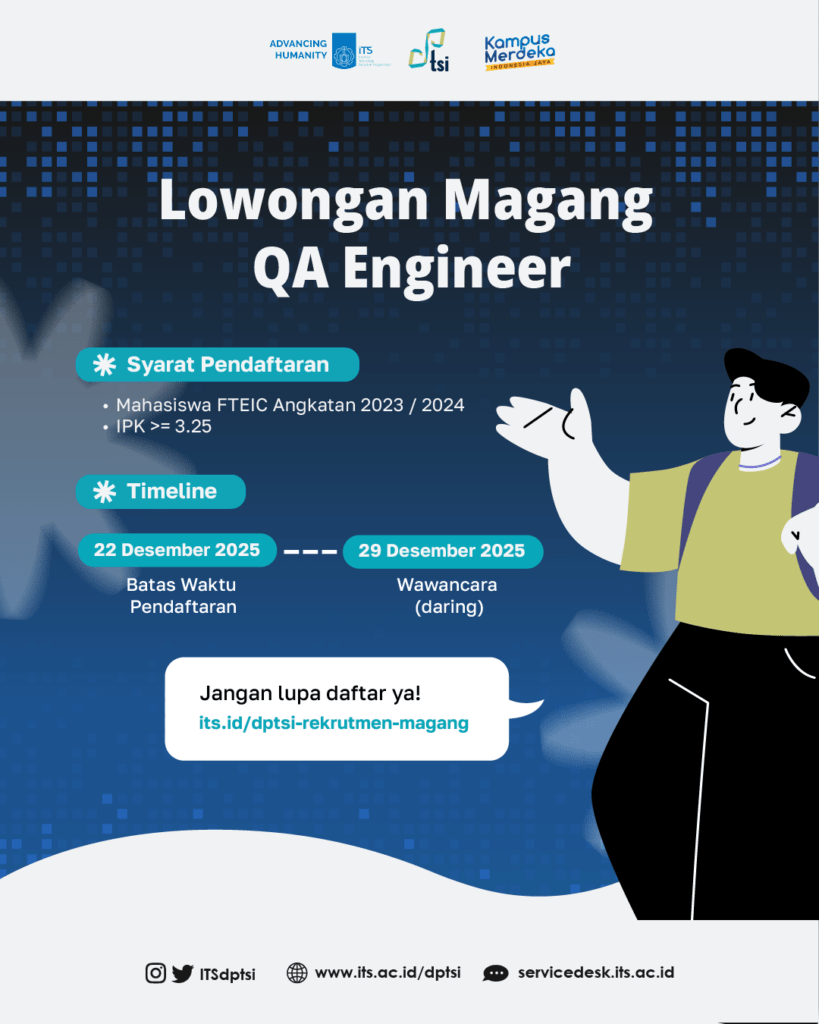 π’ Lowongan Magang QA Engineer β DPTSI ITS π’ Direktorat Pengembangan Teknologi dan Sistem Informasi (DPTSI) ITS membuka kesempatan
