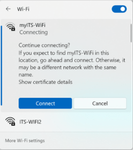 2. Cari SSID myITS-WiFi dan klik Connect.